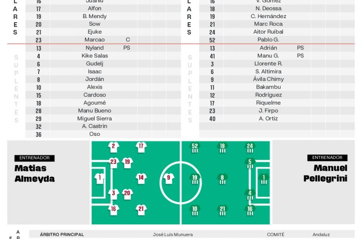 Ya están seleccionados los 22 protagonistas que comenzarán el duelo en el Benito Villamarín....