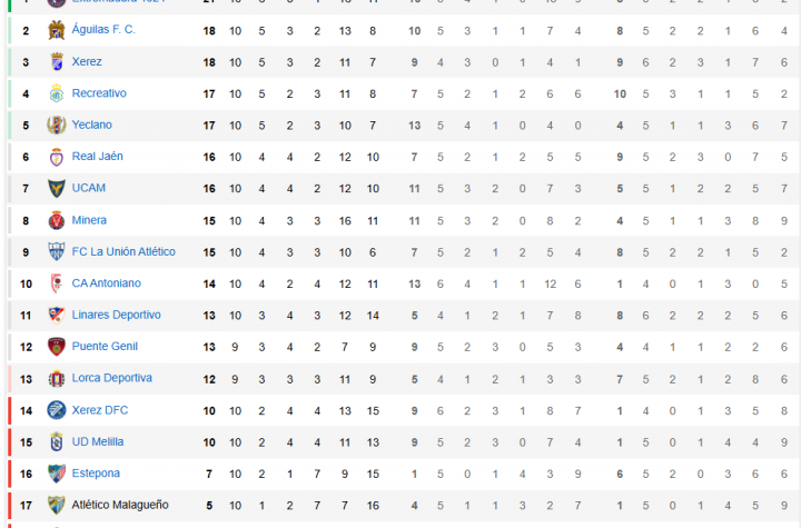 Terminada la jornada 10 de 2 RFEF grupo 4, el CD eXtremadura sigue Lider...