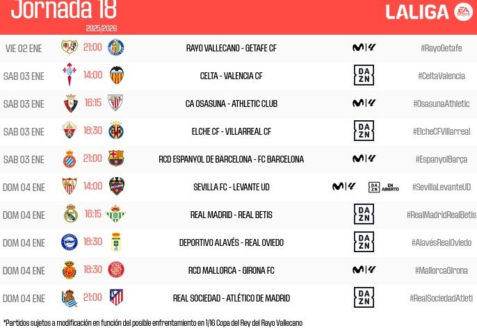 LALIGA ha desvelado, por fin, el calendario detallado de la Jornada 13 de LALIGA...