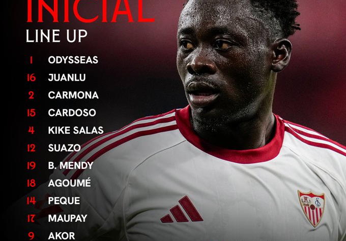 Sevilla FC Dmitrovic; Juanlu, Badé, Sergio Ramos, Kike Salas, Pedrosa; Sow, Gudelj, Suso; Ocampos...