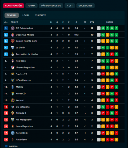 Asi quedo la Clasificacion del Grupo 4 de 2 RFEF en su Jornada 4